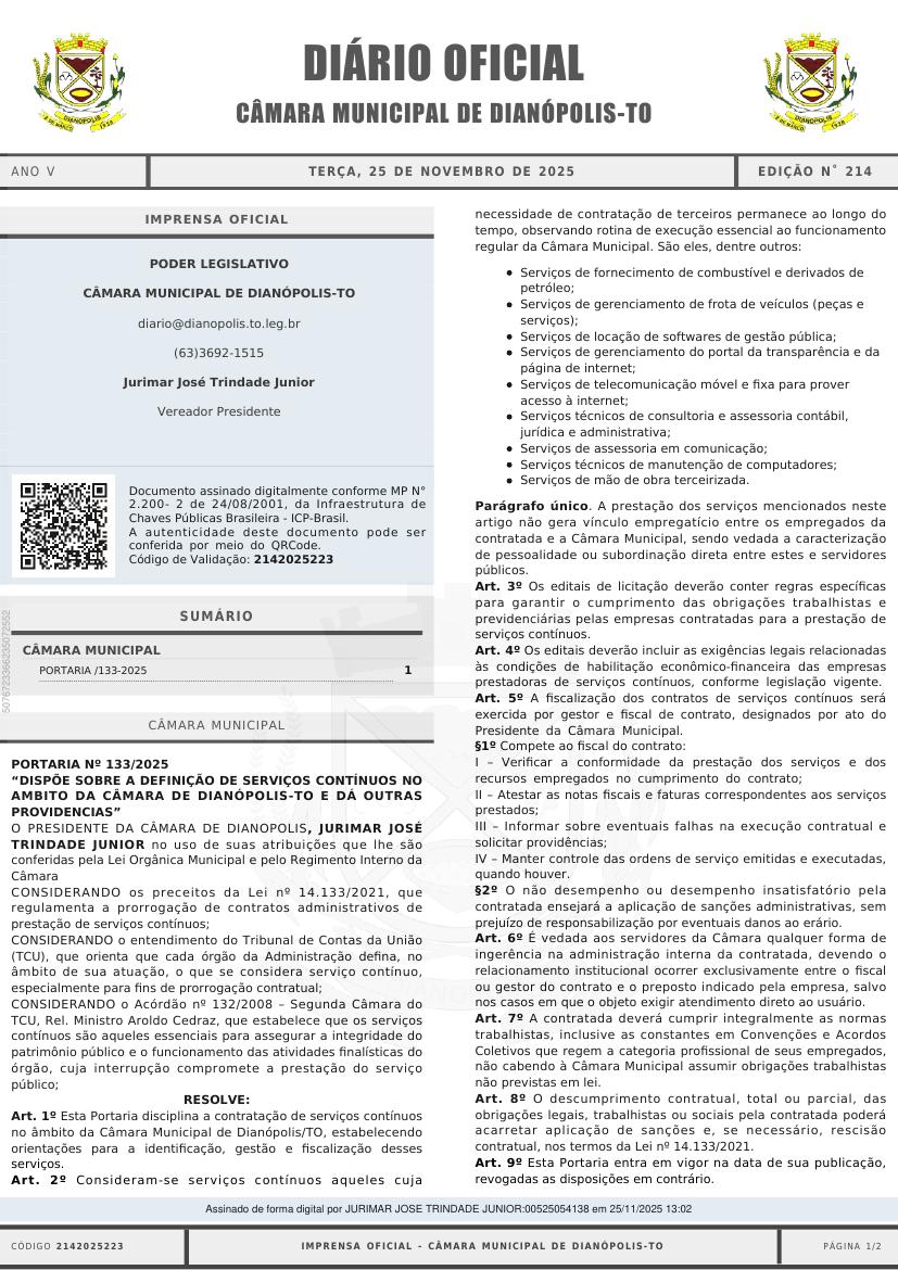 14/11/2025 Câmara Municipal Câmara de Dianópolis aprova criação de zonas de APA em sessão marcada por debate ambiental e homenagens 14 de November de 2025 Ler notícia completa