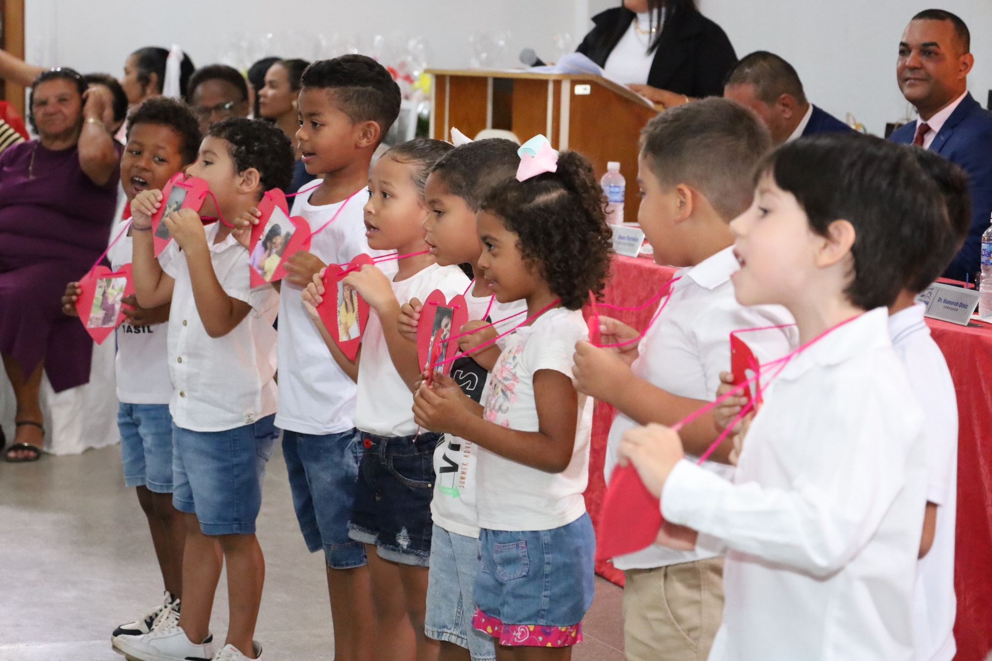 O evento contou com a presença de autoridades, entre secretários municipais, diretores escolares, militares e representantes comerciais, todos unidos em uma celebração de amor e gratidão.