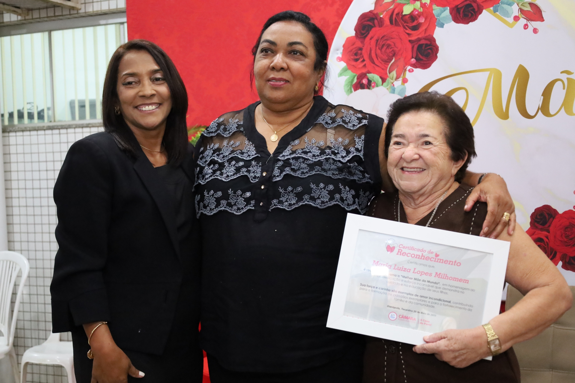 Durante a solenidade, foram entregues certificados de reconhecimento a 11 mães da comunidade, homenageadas pelos 11 vereadores por suas contribuições significativas. Cada uma delas compartilhou histórias emocionantes, repletas de desafios e superações, tocando o coração de todos os presentes.